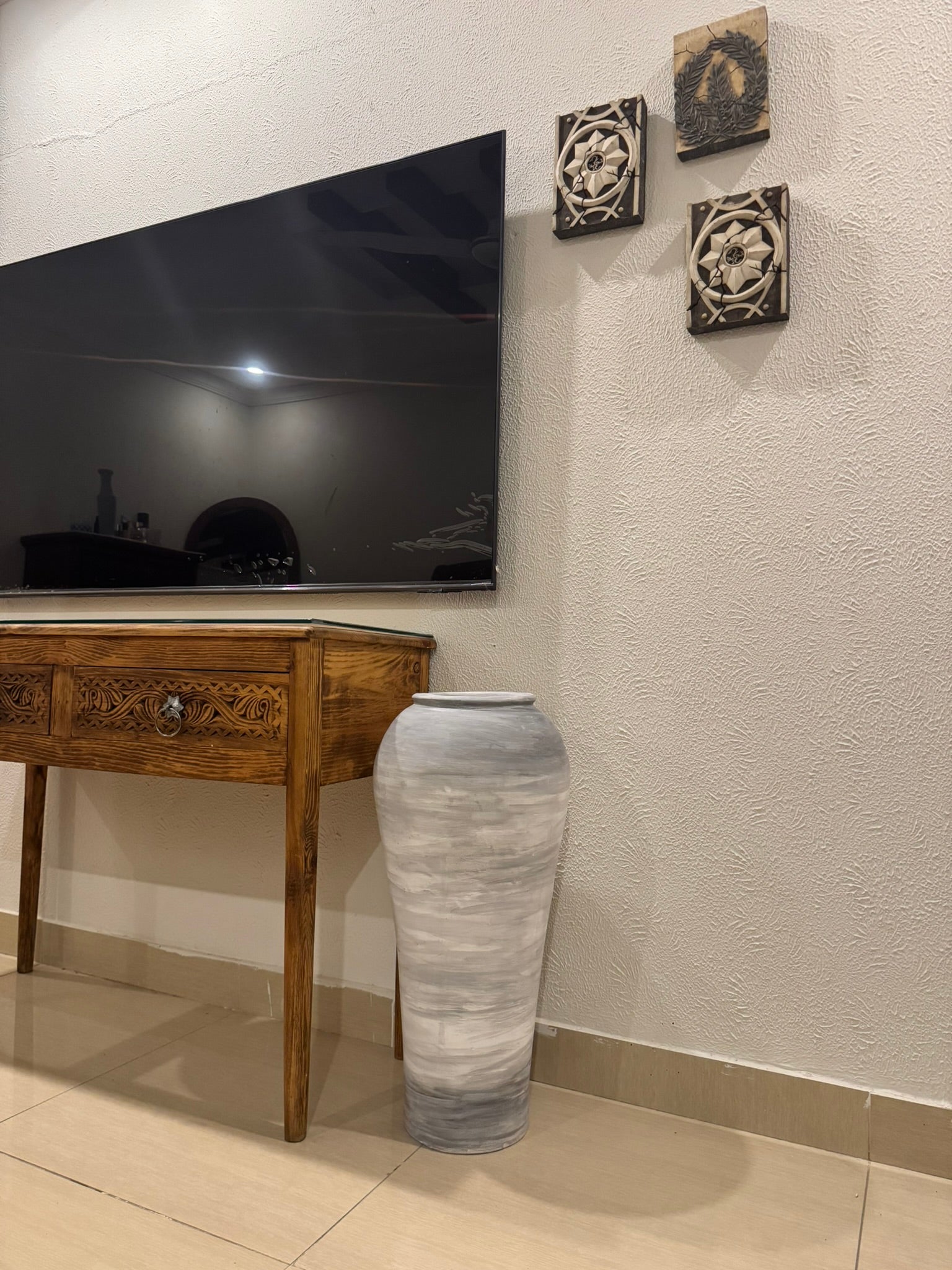 This tall handcrafted vase features an organic blend of soft greys, creating a gentle gradient that mirrors natural stone. Its minimalist silhouette and hand-finished texture bring quiet sophistication to any space — whether styled alone or with tall stems.