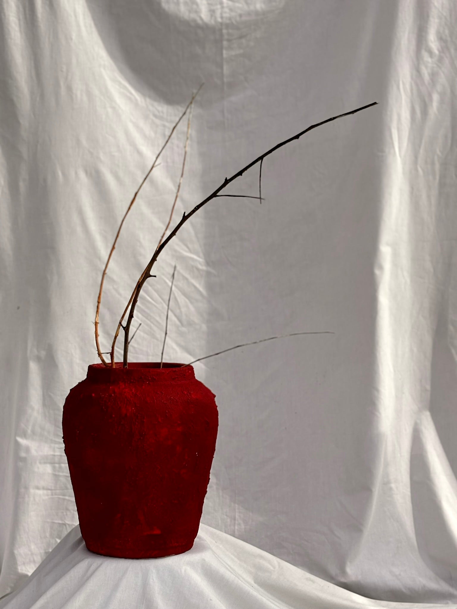 ''LAALI" is not just a vase. It's a conversation starter. This beautiful burgundy vase in textured finish is a statement piece that adds an element of uniqueness to your home decor aesthetic.