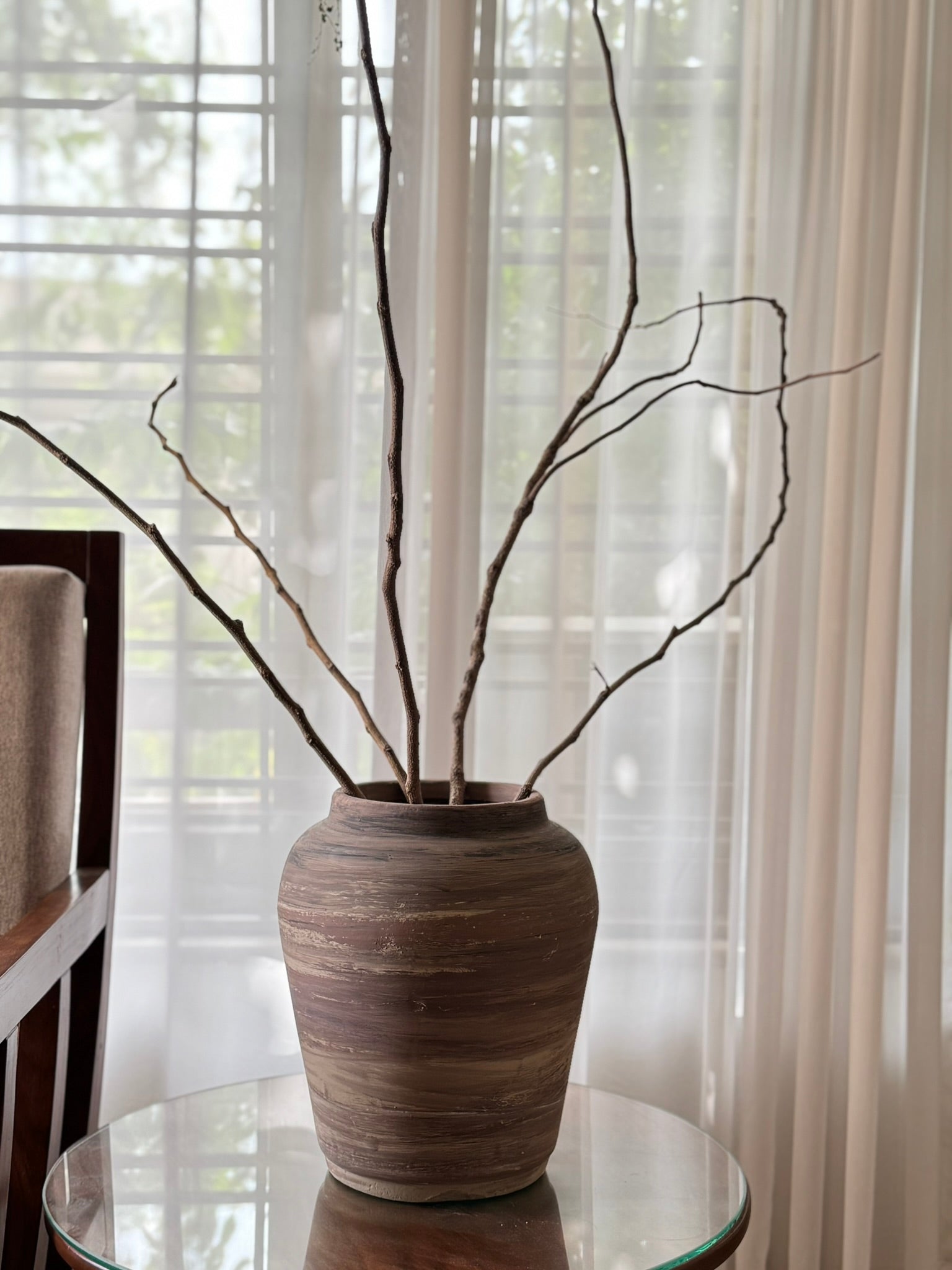 Inspired by that untouched beauty, this piece was shaped by hand to echo the softness of river stone. No two vases carry the same pattern — each one tells its own quiet story of balance, patience, and craft.