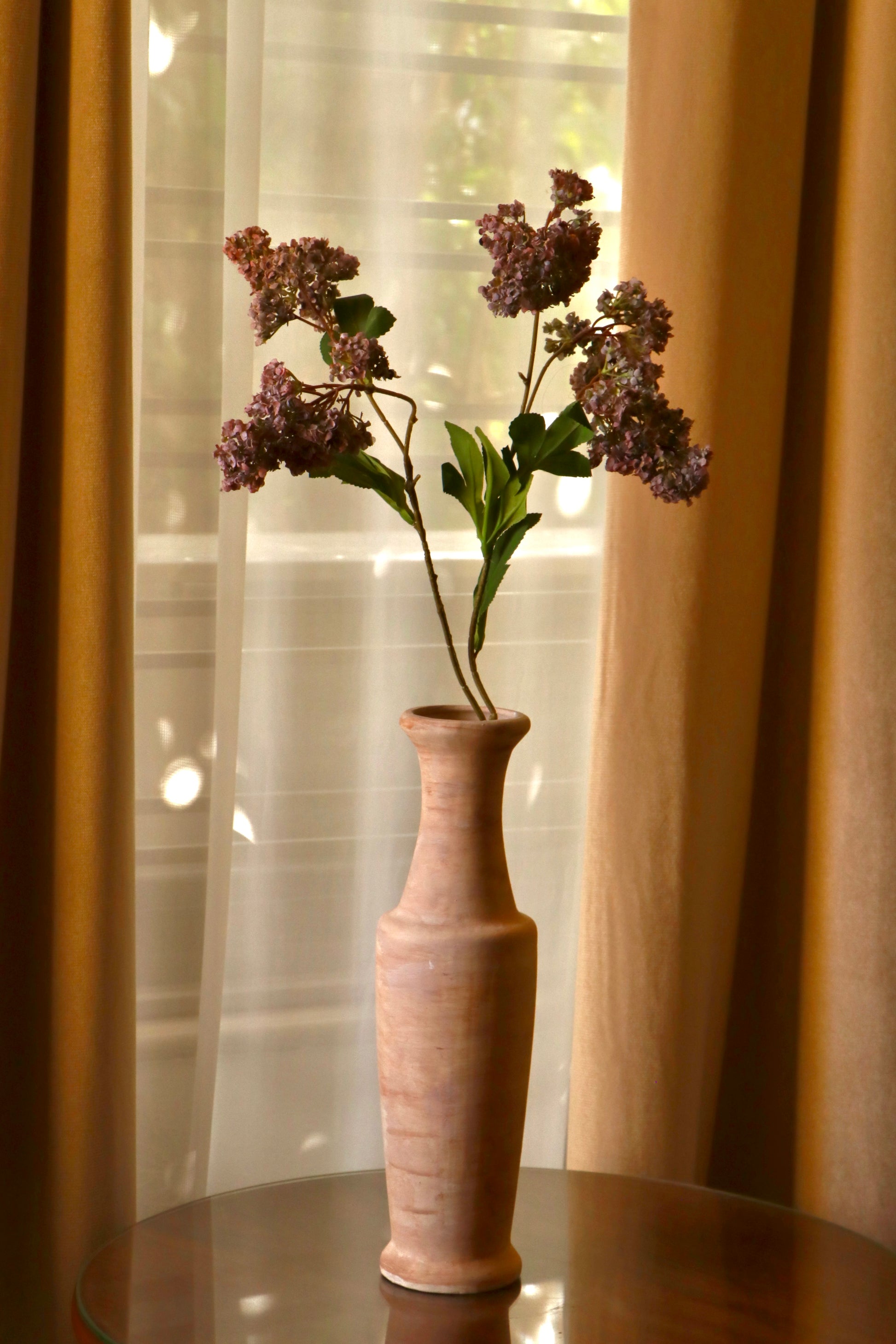 Handcrafted with a smooth matte finish and a tall, graceful silhouette, this piece is made to stand alone or cradle a delicate arrangement. Its natural earthen tones and timeless shape blend seamlessly with minimalist, rustic, or boho interiors.